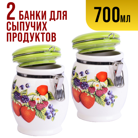 Набор банок для сыпучих 2шт 700мл Ягоды дол/металл LR (х18).