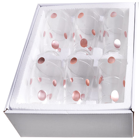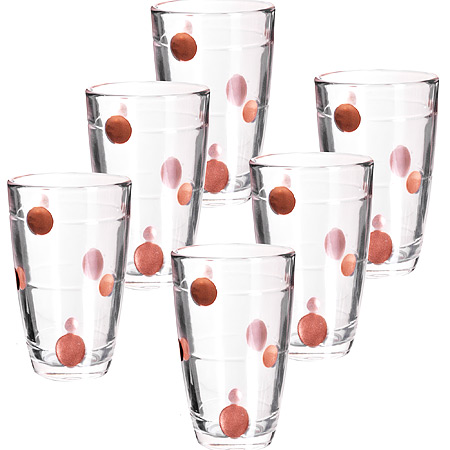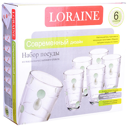 Набор стаканов LORAINE выполнен из прочного высококачественного стекла и декорирован цветным узором. Набор состоит из 6-ти стаканов объемом в 300 мл. Стаканы предназначены для подачи воды, сока и других напитков. Благодаря слегка рифленой внешней поверхности стакана, его очень удобно держать в руке. Оригинальность оформления изделий придется по вкусу всем без исключения. Такой набор послужит отличным подарком к празднику, а также добавит уюта любому праздничному столу! Посуда обладает гладкой непористой поверхностью, не впитывает запахи, легко моется.Подходит для мытья в посудомоечной машине.