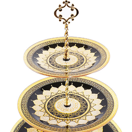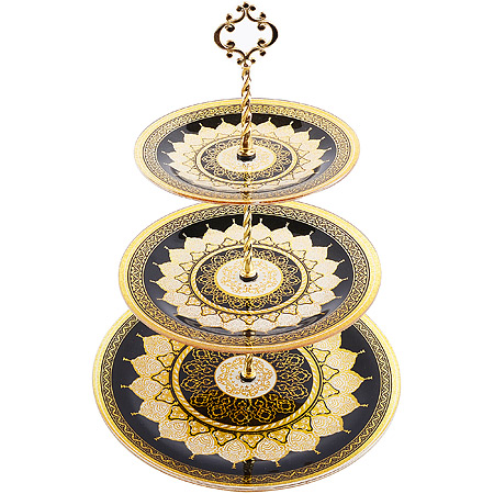 ОписаниеКрасочное 3-ярусное блюдо, выполненное из высококачественного стекла, сочетает в себе классический дизайн с максимальной функциональностью. Блюдо предназначено для красивой подачи конфет, фруктов и десертов. Тарелочки конфетницы имеют яркое красочное покрытие и оформлены блестящим узором. Прочная стойка-держатель и плоская ножка конфетницы выполнена из металла. Высота конфетницы в собранном виде составляет 38 см. Элегантная конфетница украсит сервировку Вашего стола и подчеркнет прекрасный вкус хозяйки, а также станет отличным подарком. Изделие упаковано в индивидуальную коробку.