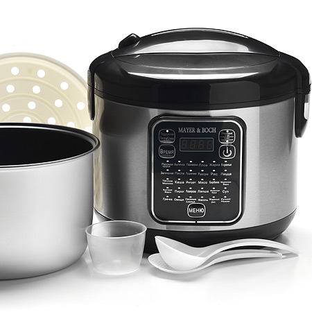 Мультиварка объединяет в себе качества множества кухонных приборов. Она запекает, жарит, варит, сохраняя все полезные свойства продуктов. Пища сохраняет все витамины и минеральные вещества, а процесс приготовления превращается в приятное и интересное занятие. Все, что Вам необходимо сделать - это выбрать нужный режим, заложить в мультиварку необходимые продукты и включить ее, дальше мультиварка сделает все сама. Отличительной особенностью данной мультиварки являются 30 программ приготовления: рисовая крупа, выпечка, пароварка, плов, фритюр, варенье, запекание, паста, тушение, разогрев, рис, пицца, теплое молоко, каша, йогурт, мясо, барбекю, медленная варка, быстрая варка, пирог, разморозка, лапша, молочная каша, суп, гречка, овощи, овсянка, фасоль, жареный рис, а также ручной режим. Мультиварка имеет встроенный микропроцессор управления и большой дисплей LED. Утолщенная съемная кастрюля с антипригарным покрытием объемом 5 литров. Функция контроля NEURO FUSSY, обеспечивающая специальный процесс нагрева для приготовления вкусных блюд. Аксессуары в комплекте: лопатка, половник, мерный стакан, подставка-пароварка. Мультиварка станет Вашим надежным помощником в приготовлении разных блюд, она обеспечит Вас свободным временем, отличным настроением и замечательно приготовленными блюдами!