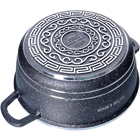 Кастрюля с крышкой MAYER&BOCH изготовлена из литого алюминия, что исключает возможность деформации и гарантирует долгий срок службы. Утолщенное дно выполненное из алюминия, обеспечивает идеальный контакт с конфоркой и способствует равномерному разогреванию пищи. Мраморное антипригарное покрытие позволяет готовить практически не используя растительное масло, что значительно увеличивает полезность приготовляемой еды. В комплект также входит крышка из жаропрочного стекла с пароотводом.