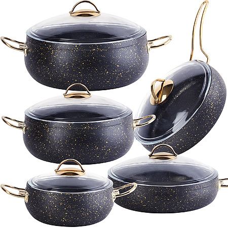 Набор кастрюль с крышками от MAYER&BOCH – идеальное решение для приготовления вкусных и здоровых блюд. В набор входят: кастрюля с крышкой 3 л, кастрюля с крышкой 4,5 л, кастрюля с крышкой 7 л, сотейник с крышкой 3 л и жаровня с крышкой 4 л. Набор кастрюль MAYER&BOCH - красивая и прочная литая алюминиевая посуда с антипригарным покрытием, что исключает возможность деформации и гарантирует долгий срок службы. Кастрюли с крышками не только являются незаменимыми в плане варки и тушения, но также могут быть использованы как сковороды, позволяя вам обжаривать продукты прямо внутри кастрюль. Мраморное антипригарное покрытие позволяет готовить практически не используя масло, что значительно увеличивает полезность приготовляемой еды. У кастрюли толстые стенки и дно, благодаря чему происходит равномерный нагрев поверхности, тепло сохраняется дольше. Вы сможете приготовить без лишнего использования масла или жира, сохраняя при этом непревзойденный вкус и аромат вашей еды. Набор кастрюль с антипригарным покрытием с крышкой деально подходят для приготовления разнообразных блюд – от супов и соусов до каши и пасты, плова, казан-кебаб, жаркое. Кастрюли с крышкой в комплекте из жаропрочного стекла, со стальным ободом. Набор кастрюли подходят для всех типов плит, кроме индукционных. Кастрюли снабжены крепкими металлическими ручками, которые обеспечивают удобный захват. Благодаря высокотехнологичному оборудованию, кастрюля алюминиевая безупречного качества и по доступной цене, соответствует стандартам качества и ГОСТ. Кастрюли простоты в уходе: мечта каждой хозяйки, они легко моются и не требуют специального ухода. Набор кастрюль с антипригарным покрытием имеет стильный дизайн с мраморным напылением прекрасно впишется в любой интерьер и станет украшением интерьера. Набор кастрюль MAYER&BOCH – это отличный подарок маме, бабушке, сестре, на Новый год, День рождения, 8 марта.