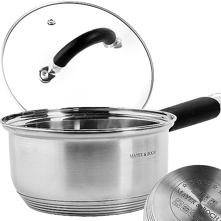 Ковш кухонный с крышкой MAYER&BOCH объемом 1,5 л – это практичная и красивая посуда для приготовления пищи, которая воплотит в жизнь любые ваши кулинарные фантазии. Изготовлен из высококачественной нержавеющей стали, с красивой зеркальной полировкой. Нержавеющая сталь обладает высокой устойчивостью к коррозии, не вступает в реакцию с холодными и горячими продуктами и полностью сохраняет их вкусовые качества. Посуда для индукционной плиты имеет многослойное капсульное дно, которое быстро и равномерно накапливает тепло и также равномерно передает его пище. Такое дно позволяет готовить блюда с минимальным количеством воды и жира, сохраняя при этом вкусовые и питательные свойства продуктов. В процессе готовки ручка не нагревается, что обеспечивает безопасность всем членам семьи. Внутри ковша расположена мерная шкала. Термостойкая стеклянная крышка с металлическим ободком плотно прилегает к ковшу и имеет отверстие для пара, которое предотвращает выкипание еды. Кастрюля ковш - лучшее решение для приготовления здоровой пищи с минимальным количеством жира, что обеспечивает снижение потери витаминов, минеральных веществ и сохраняет аромат приготовленных блюд. В нём можно варить, тушить и даже жарить различные продукты, начиная от каш, овощей и заканчивая мясом и супами. Ковшик кухонный подойдёт не только в качестве кухонной посуды для дома, но и в качестве посуды для дачи. Можно использовать на индукционных, электрических, стеклокерамических панелях и газовой плите. Сотейник с крышкой не требует специального ухода, он практичен и удобен в использовании, и его можно мыть в посудомоечной машине. Благодаря высокотехнологичному оборудованию, он безупречного качества, бережно упаковывается, соответствует всем стандартам и ГОСТ. Кухонная посуда MAYER&BOCH - поможет вам определиться с подарком на Новый год, Рождество, День Рождения, это универсальный и полезный подарок маме, бабушке, друзьям.