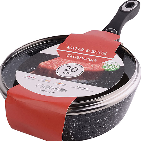 ОписаниеСотейник с мраморной крошкой MAYER&BOCH выполнен из качественного литого алюминия и снабжен антипригарным покрытием особой прочности. В комплект входит крышка.Покрытие антипригарное жаропрочное, защищает сотейник от царапин, является экологически чистым и полностью безопасным, без вредных соединений и примесей. За счет того, что пища не пригорает и не пристает к покрытию сотейника, его легко и быстро мыть. Прочное индукционное дно сотейника устойчиво к повреждениям и деформации. Эргономичная ручка из бакелита не нагревается и не скользит. Такой сотейник незаменим для жарки и тушения различных блюд. Подходит для использования на всех типах плит. Подходит для мытья в посудомоечной машине.