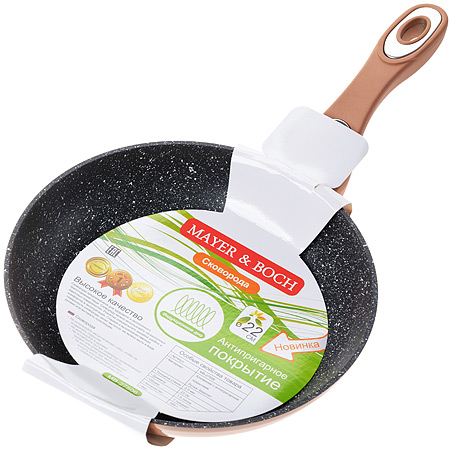 Самая вкусная еда — приготовленная с душой и любовью. С MAYER&BOCH и простые блюда, и кулинарные изыски получаются невероятно вкусными, сочными и неповторимыми. Пусть процесс готовки приносит вам истинное удовольствие, в этом вам поможет качественная глубокая сковорода 22 см. с антипригарным покрытием и эргономичной и термостойкой ручкой. В большой сковороде для кухни, на завтрак можно пожарить без масла блины, оладьи, панкейки или яичницу. Благодаря высоким стенкам легко потушить овощное рагу. А толстое индукционное дно — это идеальное решение для ваших кулинарных шедевров, позволит готовить самые вкусные и сочные стейки или котлеты. Удобная и универсальная сковородка из литого алюминия, идеально подходит для жарки и тушения на всех типах плит: газовой, индукционной, электрической, керамической, галогеновой. Керамическое покрытие из мраморной крошки, без вредных соединений и примесей, не даст блюду подгореть даже если готовить при сильном жаре. Ручка из бакелита не нагревается и не скользит в руке. Это незаменимый кухонный инвентарь для приготовления пиши. К тому же здорово поможет хозяйке сэкономить время. Ведь на ней практически не остается следов еды после готовки. Достаточно просто смахнуть остатки еды салфеткой, можно протереть губкой, легко моется под струей воды. Подходит для мытья в посудомоечной машине, при этом сохраняет свои антипригарные свойства. Для чистки также подойдет деликатное моющее средство и мягкая губка без абразивного слоя. Алюминиевая сковорода выполнена из высокотехнологичного материала, несмотря на свой легкий вес сковородка достаточно прочная, и не склонна к деформации даже при падении с высоты. Сделайте отличный подарок на день рождения или Новый год любимой маме, бабушке, сестре и подруге. Экспериментируйте и вдохновляйтесь новыми рецептами, а кухонные принадлежности от бренда MAYER&BOCH помогут воплотить даже самые смелые кулинарные фантазии!