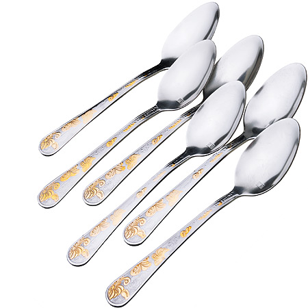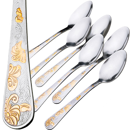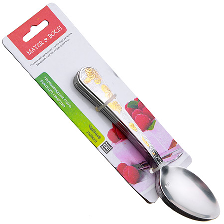 ОписаниеНабор из 6-ти чайных ложек MAYER&BOCH выполнен из высококачественной нержавеющей стали, которая проходит тщательный технический контроль. Качественная полировка обеспечивает высокую степень гигиеничности приборов. Приборы из нержавеющей стали отличаются высокими антикоррозионными свойствами и значительной устойчивостью к воздействию кислот и щелочей. Такая сталь не изменяет вкус и цвет пищи, не выделяет вредных веществ. Ручки ложек украшены элегантным золотым узором, выполненным по технологии плазменного напыления и обеспечивающим высокую износостойкость покрытия. Красивый и элегантный набор чайных ложек MAYER&BOCH станет настоящим украшением любого праздничного или обеденного стола, а эстетичность столовых приборов удовлетворит запросы даже самых требовательных и взыскательных покупателей. Подходит для мытья в посудомоечной машине.