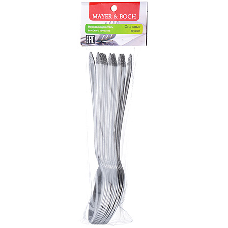 ОписаниеНабор из 12-ти столовых ложек MAYER&BOCH выполнен из высококачественной нержавеющей стали, которая проходит тщательный технический контроль. Качественная полировка обеспечивает высокую степень гигиеничности приборов. Приборы из нержавеющей стали отличаются высокими антикоррозионными свойствами и значительной устойчивостью к воздействию кислот и щелочей. Такая сталь не изменяет вкус и цвет пищи, не выделяет вредных веществ. Элегантный дизайн ручек придает ложкам особый стильный внешний вид, который будет сочетаться с любым набором посуды. Красивый и элегантный набор ложек MAYER&BOCH станет настоящим украшением любого праздничного или обеденного стола, а эстетичность столовых приборов удовлетворит запросы даже самых требовательных и взыскательных покупателей. Подходит для мытья в посудомоечной машине.