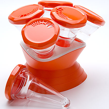 Набор MAYER&BOCH состоит из 6 баночек для специй и подставки. Баночки выполнены из акрила. Крышки, выполненные из пластика оранжевого цвета с прозрачным окошком, плотно закрываются и предотвращают высыпание специй. Также, крышки имеют регулируемые отверстия, регулируя которые, можно обильно или слегка приправить блюдо. Баночки идеально подойдут для хранения специй, соли, перца и много другого. Изделия размещаются на оригинальной треугольной подставке. Оригинальный набор MAYER&BOCH эффектно украсит интерьер кухни, а также станет незаменимым помощником в приготовлении ваших любимых блюд. С таким набором специи надолго сохранят свежесть, аромат и пряный вкус.