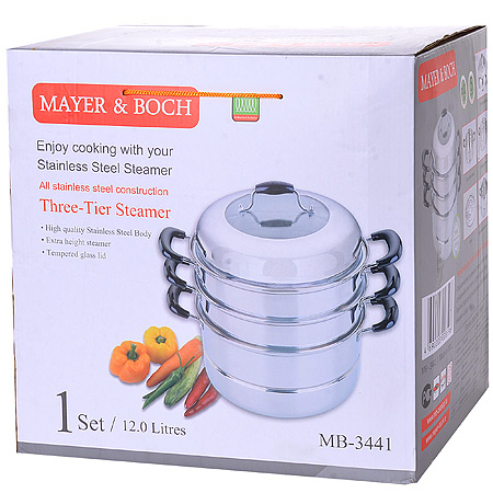 Мантоварка 3-х ярусная MAYER&BOCH — идеальное решение для тех, кто любит готовить разнообразные блюда на пару. Она состоит из трех ярусов размером 32 см каждый, два из которых предназначены для приготовления продуктов на пару, а нижний ярус представляет собой кастрюлю для воды 13 л. В комплекте к ярусу идет одна внутренняя сетка. Мантоварка изготовлена из высококачественной нержавеющей стали с зеркальной внешней поверхностью. В ней удобно готовить не только традиционные манты и пельмешки, но и хинкали, вареники, рулетики, котлетки, тефтельки, рыбку, овощи, мяско и даже замороженные продукты без предварительного размораживания. Благодаря своей многофункциональности и удобству использования, она станет незаменимым помощником на кухне и подарит вам радость от приготовления вкусных и полезных блюд. Кастрюля имеет многослойное дно, что позволяет использовать её отдельно от съемных ярусов. Мантница — долговечное и простое в использовании изделие. Легко моется и не требует особого ухода, что делает её прекрасным выбором для тех, кто ценит своё время и комфорт. Возможность мыть в посудомоечной машине облегчает уход за ней. Эта удобная и надёжная пароварка станет незаменимым помощником для кулинара и профессиональным инструментом для приготовления разнообразных блюд, с которыми справится даже подросток. Принцип работы такой же, как у пароварки для плиты: в нижнюю часть заливается холодная вода, и ёмкость ставится на плиту. Универсальная пароварка-кастрюля подходит для всех типов кухонных плит, включая индукционные. Нержавеющая сталь, из которой сделана кастрюля, позволяет готовить полезные и диетические блюда без добавления масла. С мантоваркой вы сможете удивлять своих близких и друзей кулинарными шедеврами. Вам больше не придётся тратить много времени на варку — индукционная пароварка позволит приготовить любимые блюда за считаные минуты. Отсутствие жарки и лишнего жира сделает процесс приготовления здоровой пищи простым и быстрым. Подарите мантницу своей любимой женщине, маме, бабушке, подруге, сестре, коллеге на Новый год, Рождество, день рождения, юбилей, 8 Марта, новоселье или другой праздник. Этот практичный подарок обязательно порадует любую хозяйку.