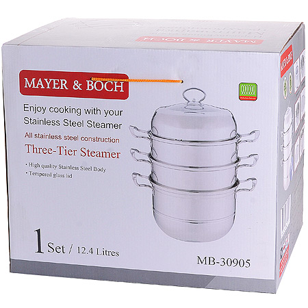 Мантоварка 3-х ярусная MAYER&BOCH — идеальное решение для тех, кто любит готовить разнообразные блюда на пару. Она состоит из трех ярусов размером 32 см каждый, два из которых предназначены для приготовления продуктов на пару, а нижний ярус представляет собой кастрюлю для воды 12,4 л. В комплекте к каждому ярусу идут две внутренние сетки. Мантоварка изготовлена из высококачественной нержавеющей стали с зеркальной внешней поверхностью. В ней удобно готовить не только традиционные манты и пельмешки, но и хинкали, вареники, рулетики, котлетки, тефтельки, рыбку, овощи, мяско и даже замороженные продукты без предварительного размораживания. Благодаря своей многофункциональности и удобству использования, она станет незаменимым помощником на кухне и подарит вам радость от приготовления вкусных и полезных блюд. Кастрюля имеет многослойное дно, что позволяет использовать её отдельно от съемных ярусов. Мантница — долговечное и простое в использовании изделие. Легко моется и не требует особого ухода, что делает её прекрасным выбором для тех, кто ценит своё время и комфорт. Возможность мыть в посудомоечной машине облегчает уход за ней. Эта удобная и надёжная пароварка станет незаменимым помощником для кулинара и профессиональным инструментом для приготовления разнообразных блюд, с которыми справится даже подросток. Принцип работы такой же, как у пароварки для плиты: в нижнюю часть заливается холодная вода, и ёмкость ставится на плиту. Универсальная пароварка-кастрюля подходит для всех типов кухонных плит, включая индукционные. Нержавеющая сталь, из которой сделана кастрюля, позволяет готовить полезные и диетические блюда без добавления масла. С мантоваркой вы сможете удивлять своих близких и друзей кулинарными шедеврами. Вам больше не придётся тратить много времени на варку — индукционная пароварка позволит приготовить любимые блюда за считаные минуты. Отсутствие жарки и лишнего жира сделает процесс приготовления здоровой пищи простым и быстрым. Подарите мантницу своей любимой женщине, маме, бабушке, подруге, сестре, коллеге на Новый год, Рождество, день рождения, юбилей, 8 Марта, новоселье или другой праздник. Этот практичный подарок обязательно порадует любую хозяйку.