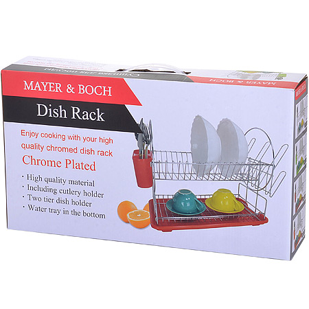 ОписаниеДвухъярусная сушилка для посуды MAYER&BOCH выполнена из высококачественной хромированной стали и пластика. В сушилке предусмотрены отделения для тарелок, чашек и столовых приборов. Благодаря конструкции с вместительным поддоном для сбора воды, Вы не будете тратить время на вытирание посуды после мытья. Стальная часть конструкции защищена от коррозии хромированным покрытием, что гарантирует ей продолжительное время эксплуатации и эстетичный внешний вид. Сушилка для посуды станет незаменимым помощником на кухне. Компактность сушилки позволит расположить ее по Вашему усмотрению - на свободном крыле мойки, на столешнице или в навесных шкафах кухонного гарнитура. Оригинальный и современный внешний вид идеально дополнит интерьер кухонного пространства.