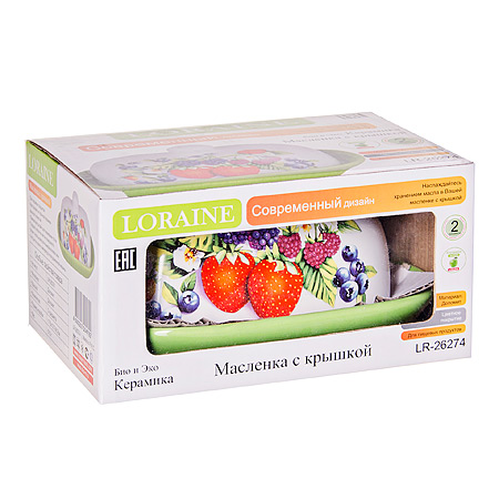 ОписаниеМасленка LORAINE овальной формы, выполненная из качественной доломитовой керамики, станет украшением интерьера вашей кухни. Масленка надежно закрывается керамической крышкой и прекрасно подойдет для хранения и сервировки масла, сыра, творога. Масленка рассчитана примерно на 200 г. масла. Пригодна для использования в холодильнике, морозильнике, микроволновой печи. Подходит для мытья в посудомоечной машине.
