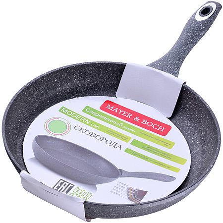 ОписаниеСковорода с мраморной крошкой MAYER&BOCH выполнена из качественного литого алюминия и снабжена антипригарным покрытием особой прочности. Покрытие антипригарное жаропрочное, защищает сковороду от царапин, является экологически чистым и полностью безопасным, без вредных соединений и примесей. За счет того, что пища не пригорает и не пристает к покрытию сковороды, ее легко и быстро мыть. Прочное индукционное дно сковороды устойчиво к повреждениям и деформации. Эргономичная ручка из бакелита не нагревается и не скользит. Такая сковорода является незаменимой для жарки и тушения различных блюд. Подходит для использования на всех типах плит. Подходит для мытья в посудомоечной машине.