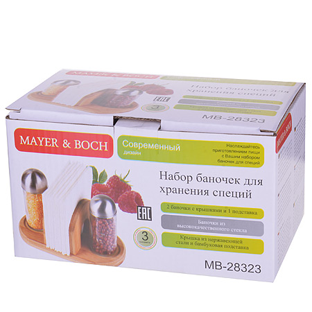 Набор для специй MAYER&BOCH из высококачественного стекла, идеально подходит для любой кухни. Модный, элегантный дизайн, скрасит интерьер Вашей кухни. Баночки можно наполнять любыми, используемыми Вами специями. Герметичное закрытие, обеспечит самое лучшее хранение. Специи всегда будут свежими. Специальная подставка из бамбука, делает хранение баночек еще более удобным. Наслаждайтесь приготовлением пищи с Вашим набором баночек для специй.