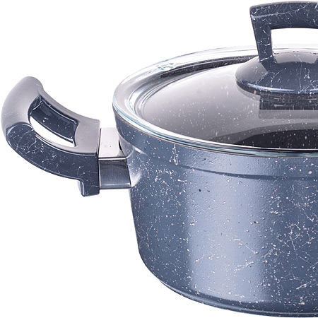 ОписаниеКастрюля с крышкой HASCEVHER изготовлена из литого алюминия, что исключает возможность деформации и гарантирует долгий срок службы. Утолщенное, выполненное из алюминия и нержавеющей стали, индукционное дно обеспечивает идеальный контакт с конфоркой и способствует равномерному разогреванию пищи. Мраморное антипригарное покрытие позволяет готовить, практически не используя растительное масло, что значительно увеличивает полезность приготовляемой еды. Бакелитовые ручки кастрюли не нагреваются. В комплект также входит крышка из жаропрочного стекла. Подходит для всех видов плит, включая индукционные.