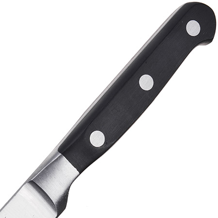ОписаниеНож MAYER&BOCH с лезвием из высококачественной нержавеющей стали станет незаменимым помощником на Вашей кухне. Сечение ножа - клинообразно, что позволяет режущей кромке клинка быть продолжительное время острой. Поверхность клинка легко моется, не впитывает и не «передает» запахи пищи при нарезке различных продуктов. Эргономичная рукоятка ножа удобно ложится в ладонь, обеспечивая безопасную работу, комфортное положение в руке, надежный захват и не дает ножу скользить при использовании.