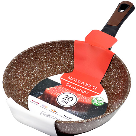 Самая вкусная еда — приготовленная с душой и любовью. С MAYER&BOCH и простые блюда, и кулинарные изыски получаются невероятно вкусными, сочными и неповторимыми. Ваша кухня станет центром притяжения, если вы выберете эту глубокую сковороду. Благодаря антипригарному покрытию и удобной съемной ручке, процесс приготовления пищи превратится в удовольствие. Эта большая сковорода позволит вам экспериментировать с блинчиками, оладьями, панкейками и яичницей, делая каждое утро особенным. Высокие стенки сковороды обеспечивают удобство тушения овощного рагу, а толстое индукционное дно позволяет создавать великолепные стейки и сочные котлетки. Элегантная и функциональная сковорода из алюминия обеспечивает комфорт в приготовлении разнообразных блюд на газовых, индукционных, электрических, керамических и галогенных плитах. Эта сковорода может служить вам и как жаровня, и как сотейник в духовке при температуре до 130 градусов. Мраморное керамическое покрытие, свободное от вредных веществ и примесей, гарантирует, что ваше блюдо не пригорит даже при высокой температуре. Рукоятка из бакелита не нагревается и предотвращает скольжение в руке. Это кухонный инвентарь для приготовления пищи, который также помогает хозяйкам экономить время. После готовки достаточно смахнуть остатки еды салфеткой или протереть губкой, а затем легко помыть сковороду под проточной водой. Достаточно просто смахнуть остатки еды салфеткой, можно протереть губкой, легко моется под струей воды. Подходит для мытья в посудомоечной машине, при этом сохраняет свои антипригарные свойства. Для чистки также подойдет деликатное моющее средство и мягкая губка без абразивного слоя. Алюминиевая сковорода выполнена из высокотехнологичного материала, несмотря на свой легкий вес сковородка достаточно прочная, и не склонна к деформации даже при падении с высоты. Сделайте отличный подарок на День Рождения, 8 марта, Рождество, Новый год любимой маме, бабушке, сестре и подруге. Экспериментируйте и вдохновляйтесь новыми рецептами, а кухонные принадлежности от бренда MAYER&BOCH помогут воплотить даже самые смелые кулинарные фантазии!
