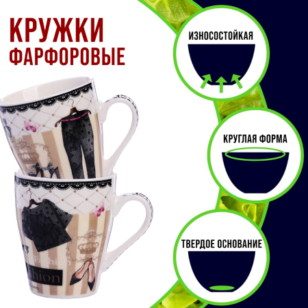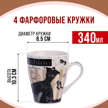 Набор кружек из 4 штук — настоящее произведение искусства, созданное для истинных ценителей вкуса и эстетики. Изготовленный из высококачественного костяного фарфора, он прослужит долгие годы и отлично подойдет для вашего дома и впишется в любой интерьер, благодаря своему красивому дизайну. Холодными вечерами из этой красивой посуды приятно выпить чая сидя у камина или за просмотром любимого сериала, а ранним утром взбодриться глотком горячего кофе планируя список дел на день. Этот набор отлично подойдет в подарок. Кружки большие, поэтому не стоит беспокоиться, что любимый напиток быстро закончится и вы не успеете им насладиться в полной мере. Кружки можно мыть в посудомоечной машине, а это в свою очередь позволяет сэкономить огромное количество времени и сил. Не только форма этой столовой посуды выполнена таким образом, чтобы ее было удобно держать в руках при использовании, но и ручка. Благодаря качественному покрытию, они сохранят яркость цвета на долгие годы. Использование этих стеклянных кружек будет делать каждый новый день настоящим праздником и принесет эстетическое удовольствие.