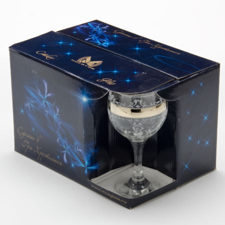 Набор бокалов для вина изготовлены из силикатного стекла и декорированы золотой тесьмой. Оригинальный дизайн, уникальная форма, прозрачные стенки придают набору невероятную эстетичность. окалы подойдут для повседневного использования как в домашних условиях, так и в местах общественного питания (кафе, бары, рестораны). Посуда обладает непористой поверхностью, не впитывает запахи, легко моется. В комплекте: 6 Бокалов объёмом 260 мл.
